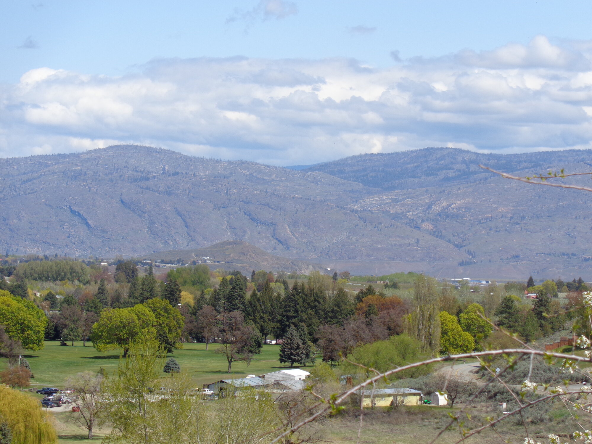 On the way back, with five miles to go, I had to get off the bike for a bit. I snapped this picture of the Okanogan Valley which becomes the Okanagan Valley once it is in Beautiful British Columbia, eh. It was either downhill or flat from here on. No restaurants--well, maybe they might have peanuts or something at the Golf Course....