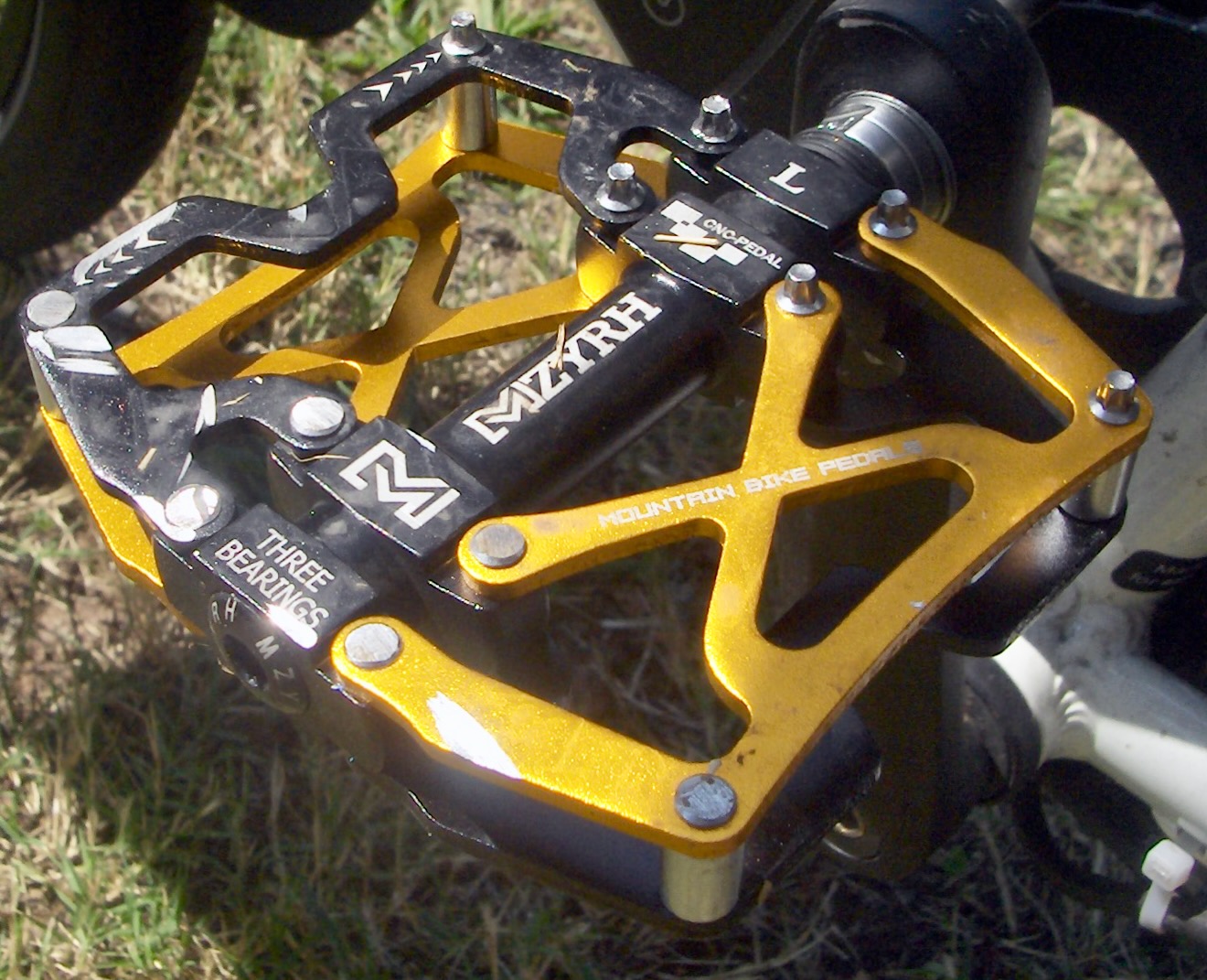I was so pleased that I bought the yellow ones, more expensive ones of the same brand, to replace the resin pedals on my other bike although the original pedals were fine. I discovered too late that they have no reflectors and that unscrewing the pins would cause the pedals to fall apart. I do not agree with the manufacturer's idea of higher quality. I took the trouble to grind down the outboard pins to see if there was an improvement. There was. Now I'll grind down the rest.