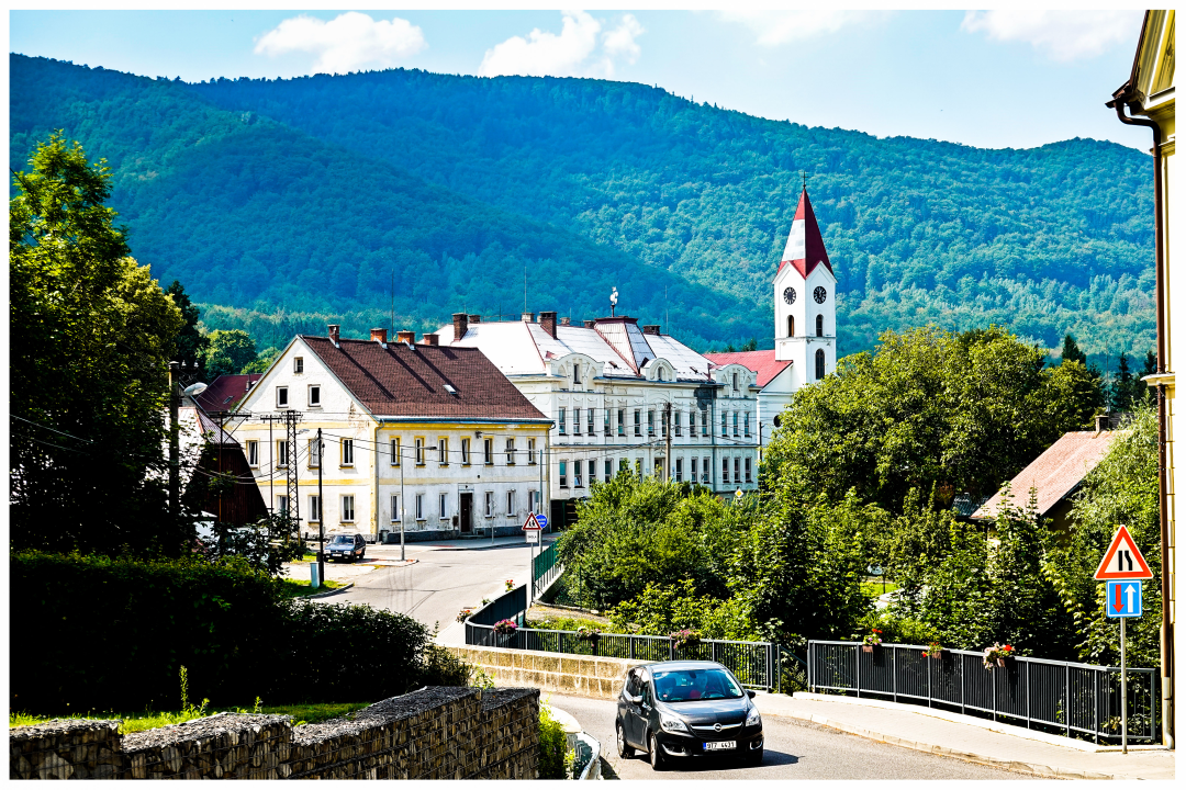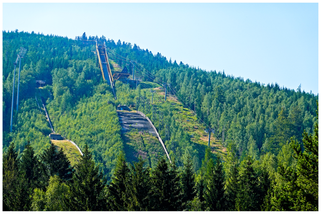 Karpacz is a spa in Karkonosze Mts (German: Riesengebirge or, Giant Mountains). The great attraction of the town is the highest peak, Śnieżka (Snowy White Mt) up there. (The number of tourist attractions would be good for a week's stay, and no cycling would be required...)