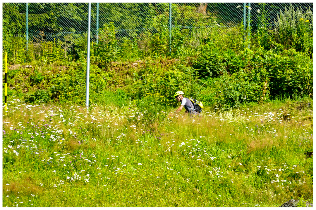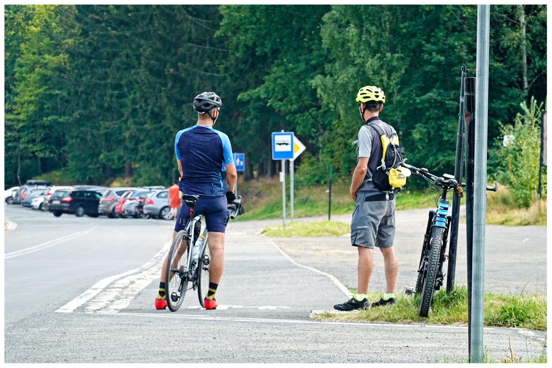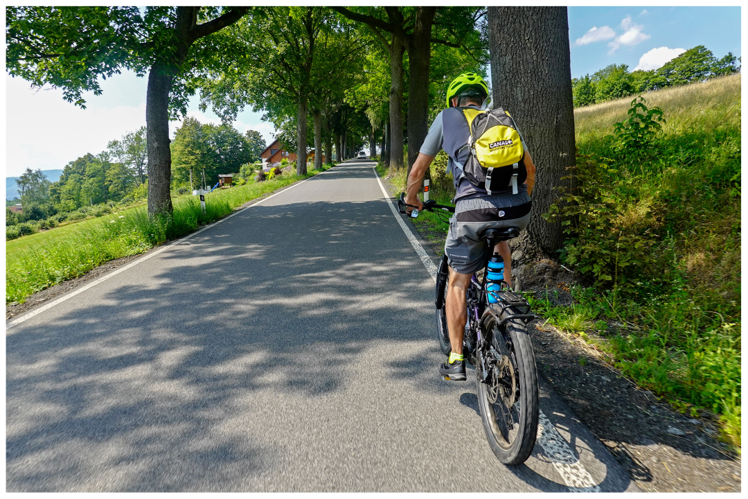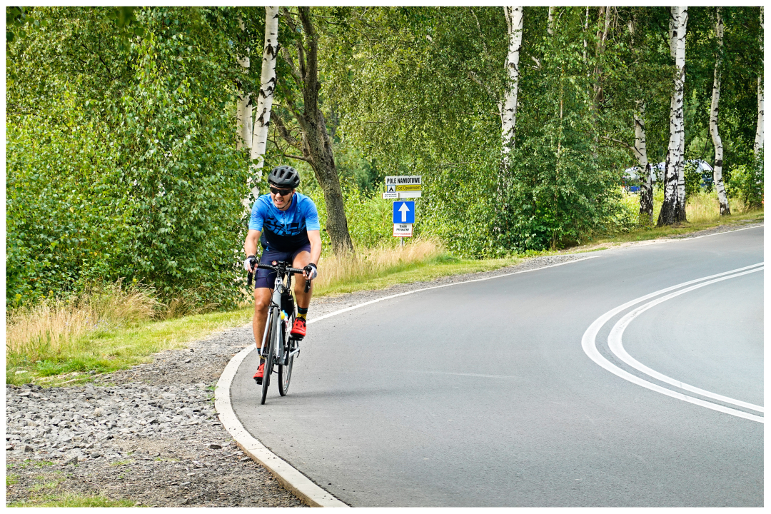 That short part of our quick ascent belonged to the Poland's Road-Cycling Championships! Average 6% grade, with occasional steeper segments. I was in no mood for joking: the full Turbo mode on and was riding uphill as fast as possible. Jacek (exceptionally) switched to more serious pedalling assistance than the day before. We both were zooming uphill to overtake some young road-cyclist. The guy was decidedly faster on occasional descents. As he was very friendly, we started talking during the ride. He explained the importance and hardness of that segment, about the Championships, on how the poor road quality made it even harder for road cyclists. Everything at crazy speed if you can call any ascent speed "crazy"