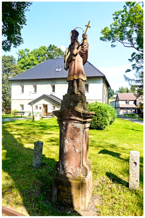 Some history. The wooden stave church seen here was built in the village of Vang in Norway ca. year 1200. No single nail was used! In 1839, the church was in decline and it was too small as well. A German traveller addressed the King of Prussia Friedrich Wilhelm IV that perhaps the King would be interested to buy the church. The King agreed and paid small money to relieve the Vang citizens from their trouble. The church was precisely documented first, with precise technical drawings. Then it was dismantled apiece and shipped to Prussia in 1841. The King wanted to re-erect the church in Berlin. He was, however convinced by Countess Friederike von Reden (living in Riesengebirge) that people of Brückenberg (now: Upper Karpacz) needed an Evangelic church. So the church was thoroughly reconstructed there in 1842. It is said only one-fifteenth of the original could be re-used, with the majority of the components made anew. The church was richly equipped and a stone bell-tower was built to protect the structure against winds blowing from the Snowy White Mt.