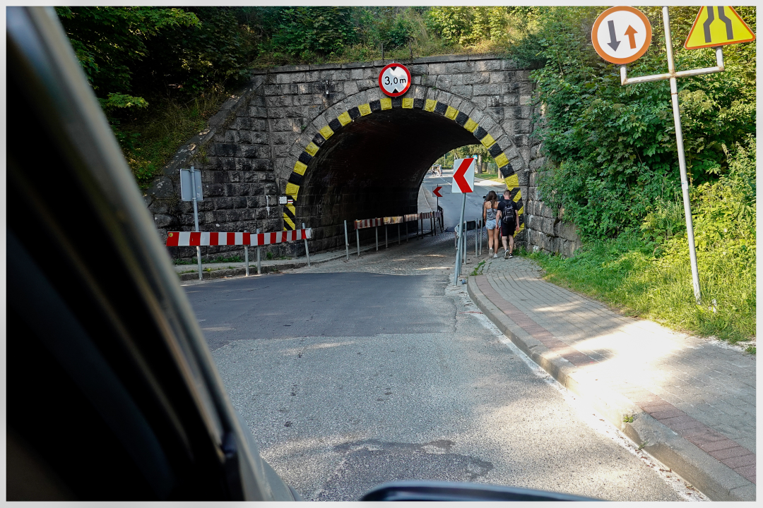 On Sunday, we needed to leave our Jelenia Góra hotel (early) and the parking lot (as soon as possible) to return to our Mazovia at reasonable hour. So I told Jacek: "We need to do a quickie, quickie to Karpacz, single battery, minimal load on the bikes!" to which he gladly agreed. We had the car packed and our bikes ready by 9:04 am.