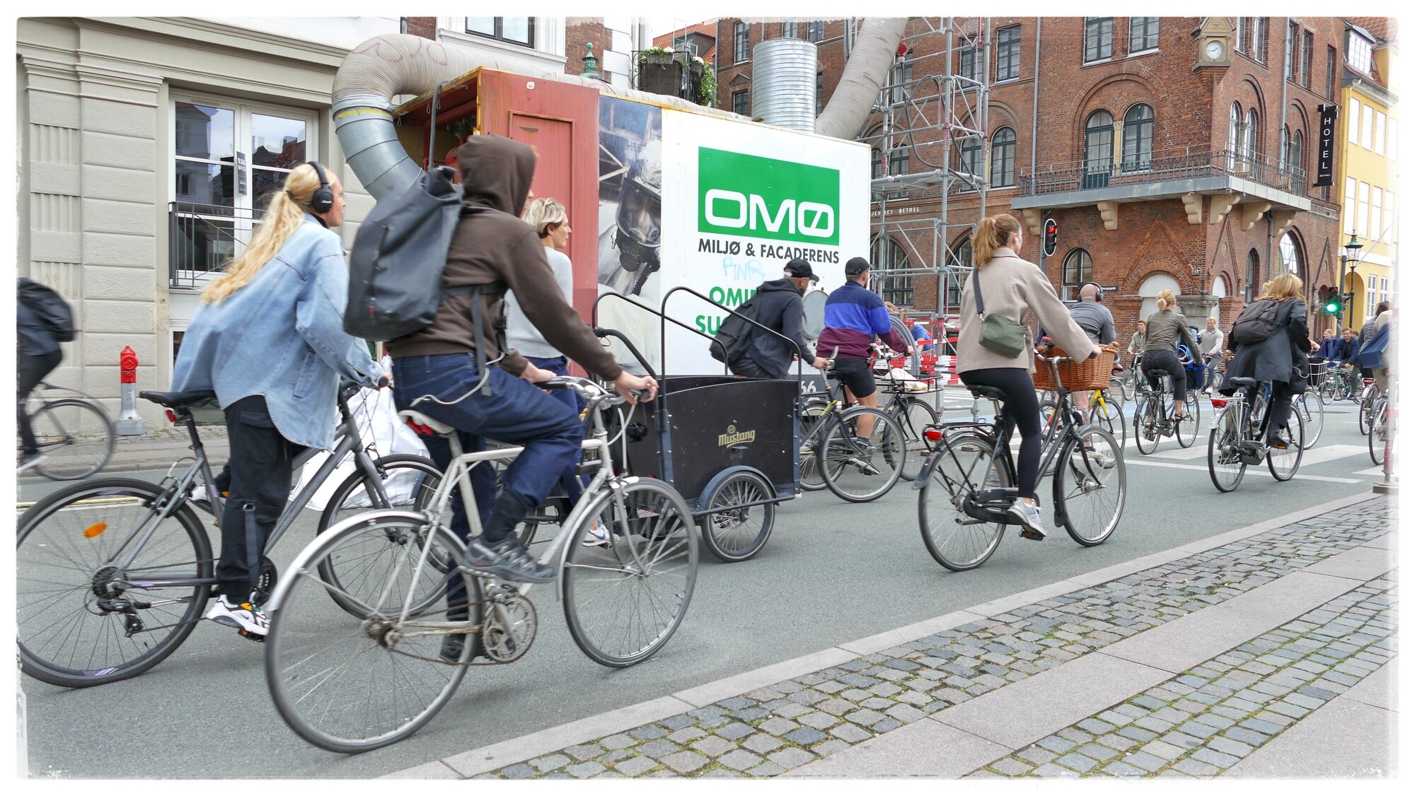 Amsterdam, Copenhagen (and Berlin) are impressive bike towns. Approximately a third of cyclists wear helmet in the capital city of Denmark. A lot of Dutch "omafiets" but all types of bikes can be seen. Very little of bike theft.