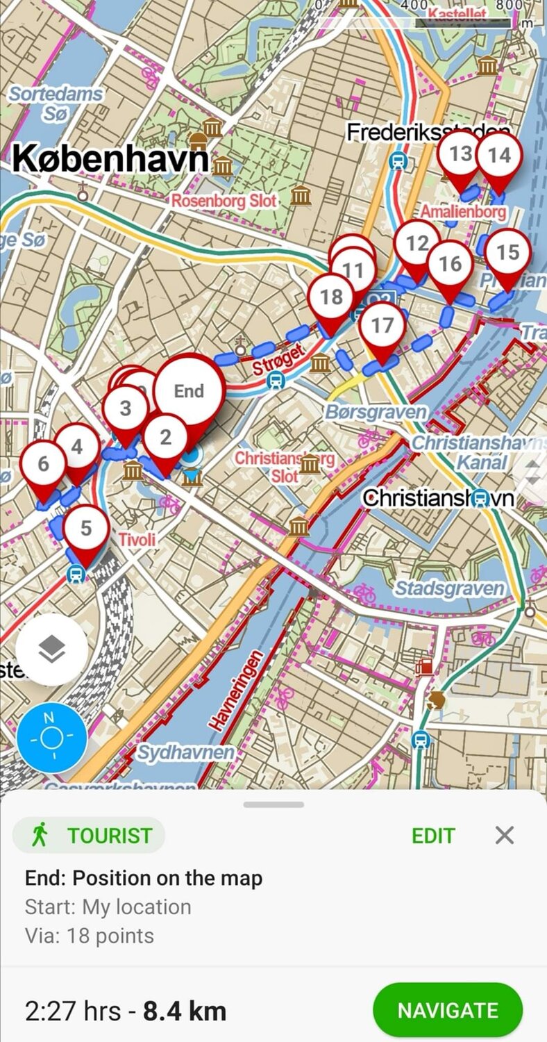 Our walk. From the Main Railway Station via Strøget to Amalienborg (the Royal Palace)