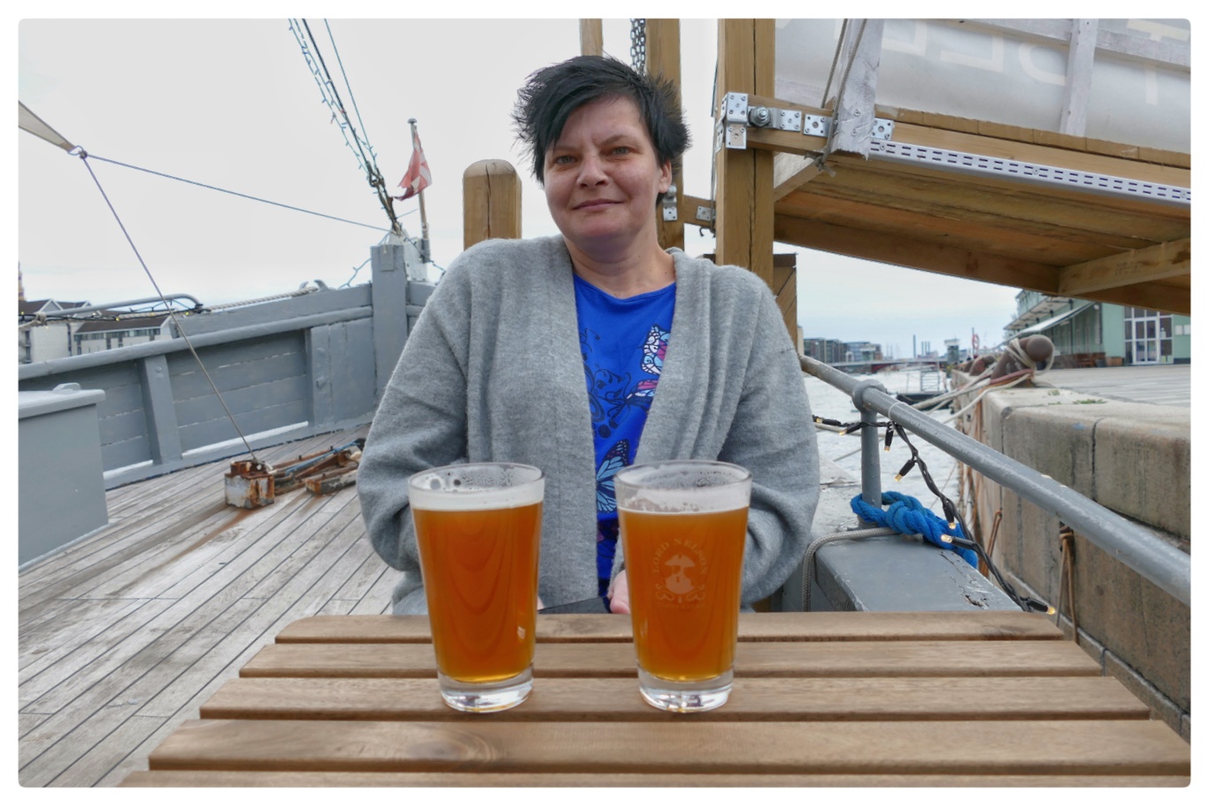 Aboard Tipsy Mermaid, a craft beer pub on a ship at the waterfront. The best ales and stouts available!
