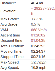 When I reached my turning point my average speed was almost 19mph but I had the strong wind behind me, by the time I got home it had dropped to 16.8mph! The headwind really drained my battery, I had to turn the assist off to make sure I had some juice left for the final climbs! Despite getting soaked it was still a very enjoyable ride, this will probably be my last midweek ride for quite some time as tomorrow isn't looking promising and I'm pretty sure I will be back at work next week!