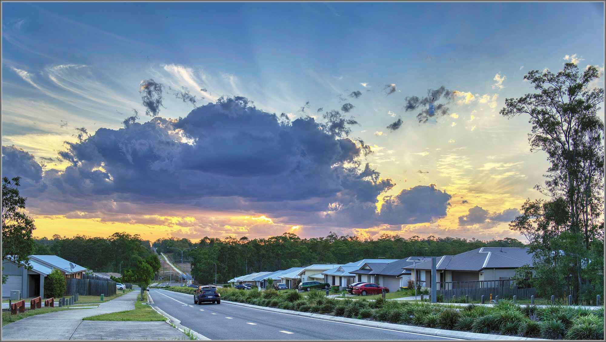 This suburban view is typical of many new developments around Australian cities. In a few decades from now, the bush in the background will most likely have been 'developed', too.