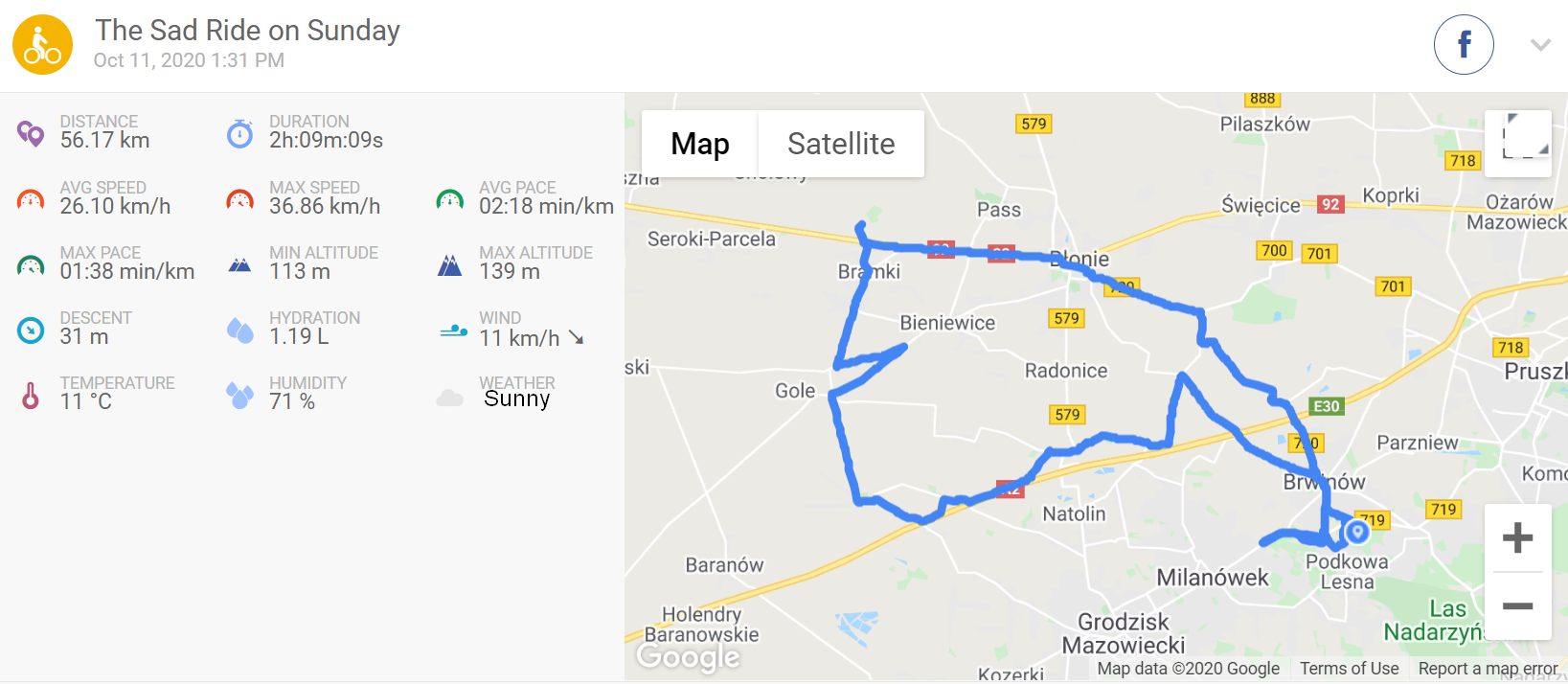 It was expected to be just a standard Sunday ride to see my daughter. I chose my Lovelec because the hub-drive e-bike is fast and steady on commuting. I wore my standard "Cold Autumn" clothes, including clear goggles. (Full sunshine, almost no wind, yet riding at 30-32 km/h on a pretty cold day required good, warm clothes). After visiting Magda I got the first message on my phone: