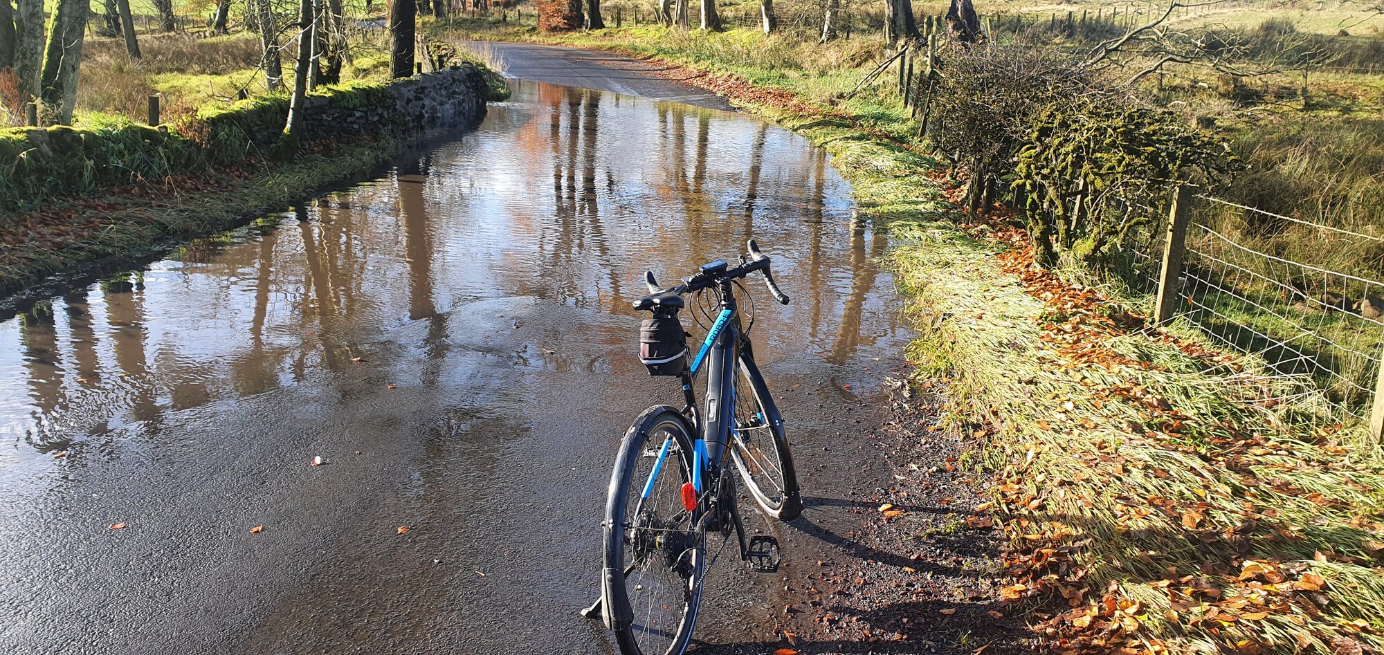 The grumpy clouds and the off-leash winds weren't inclined to be nice to a anyone seeking a casual outting, so I had the roads to myself. It was a shame, too, as the roads were beautiful, smoothed flat and very agreeable, decorated in multicolored leaves that were being unendingly arranged and rearranged by playful, artistic gusts of wind.