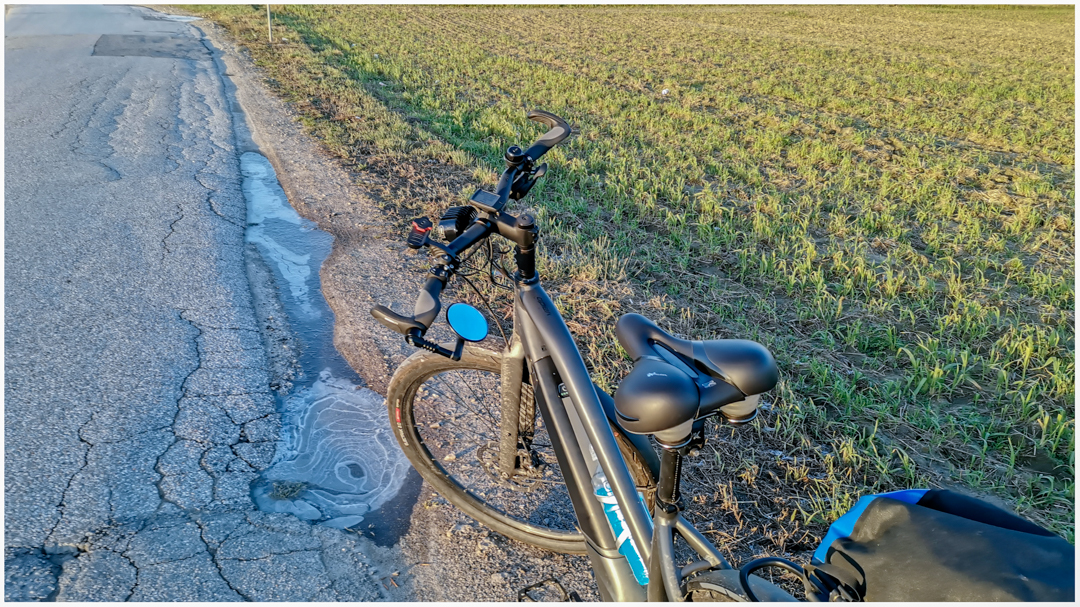 The attraction of today was SE wind of almost 36 km/h speed (I normally avoid riding during such weather). My Vado felt as it were choking under heavy gusts of the wind, the riding speed was strongly reduced. Moreover, the battery charge was "melting" like butter on hot frying pan... I had to reduce the assistance from 60 down to 40%, meaning a painful ride to Piaseczno.
