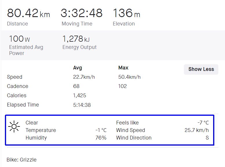 The Sunday ride has been the nicest of the rides I had this Winter! Using mostly 45% Sport mode; 60% Sport for the 15 last kilometres and 100% Turbo for the very last 5 km.