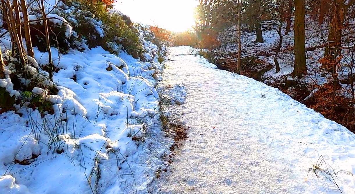 This picture doesnt do justice to how cute this path is in the snow, with little waterfalls in the gulley next it, magical with the winter sun flickering in your eyes and the crunch of the tyres on crispy snow.