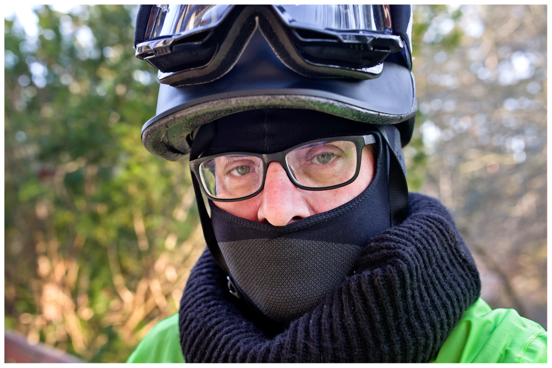 The temperature was not very low. The Sun tried the best to warm the air up. I have even disarmed some of my Winter Armour. The windproof protection remained in place, greatly improved by the balaclava.