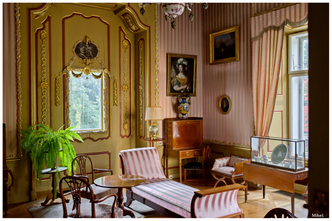 It is a 2017 photo. The Museum is temporarily closed (by the coming Monday). That room was the leisure apartment of Princess Helena. What a woman! The Voivod of Vilnius, the lady-in-waiting for the Empress Catherine The Great, a great lover (her trophies included our last King Stanislaus August Poniatowski and the Russian Ambassador von Stackelberg). She was also openly lesbian; her husband didn't mind as her high-profile love affairs helped him in his career. Both Radziwiłł lived in the hard era between the fully independent Poland and that part of Poland as a Russian puppet state (1740s to 1830s).