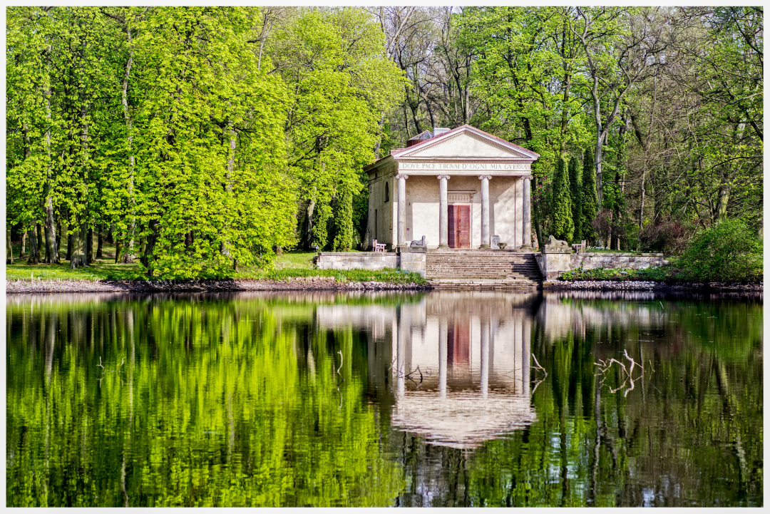 The Shrine of Diana in the Romantic Park of Arcadia. Yes, you've heard that; Arcadia. The fashion of the Classicist (and the preceding Rococo/Late Baroque) style was to create Idyllic parks. Princess Helena bought the property and created an Idyllic park at a village neighbouring with Nieborów and renamed it to Arkadia. The fake ruins are not very much interesting nowadays but the Shrine is a gem. The inscription is taken from one of the sonets of Petrarch and means: "Here I found peace after every of my wars".