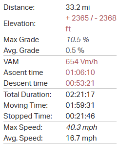 Ridewithgps always seems to show different metrics from my Wahoo Elemnt GPS, according to my Wahoo my max speed was 40.7mph and maximum gradient was 15%! I just like to keep a record of my rides so it doesn't really bother me that much at the end of the day!
