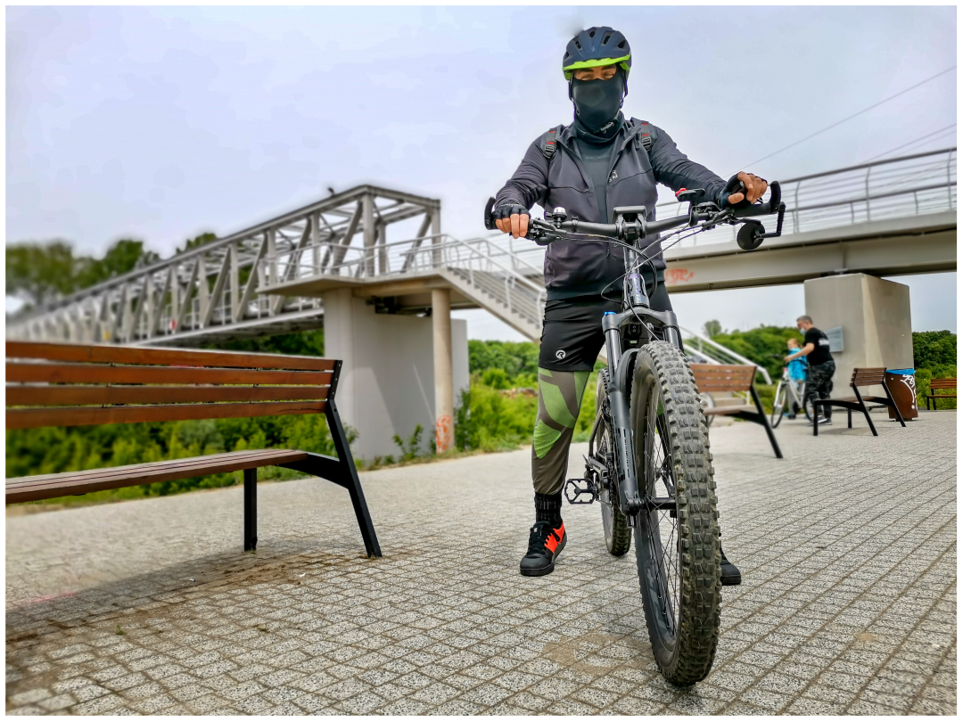 I drove in my brethren lot in Kiełpin (north of Warsaw) at 10 a.m. on Saturday. We had a morning coffee with Jacek and then we were ready for a ride (I had my cycling clothes already on when I arrived to Jacek's place, my backpack prepared, too). Jacek, who is only 3 years younger than me, is fit and strong. We were both interested about my Giant Trance E+ real range and whether a 25 km/h e-bike could keep up with a fast traditional MTB rider.