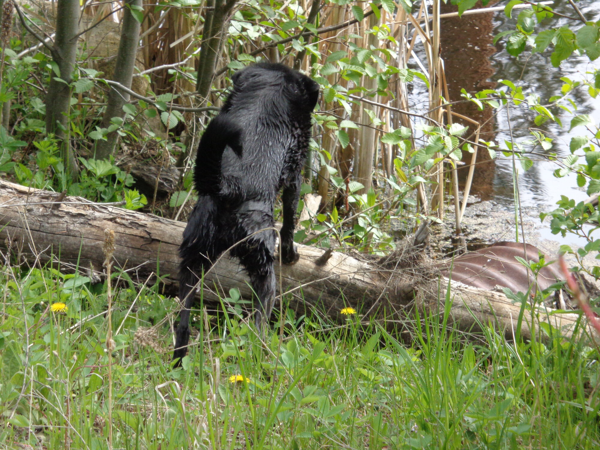 Here is how the first rest stop worked. The Demon's idea of resting was to plunge into the pond, exit, and hop around looking for something that could be chased. The resting lasted about 5 minutes, then I decided we must continue.