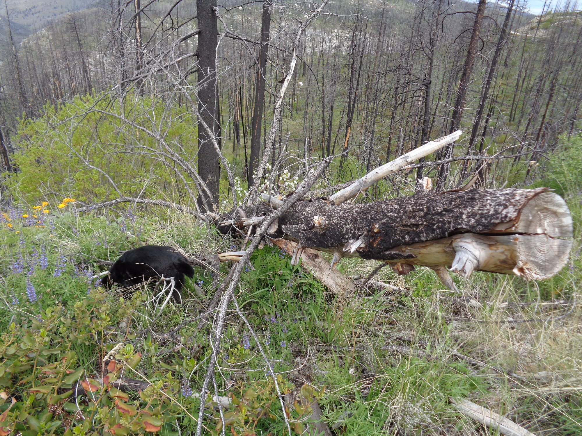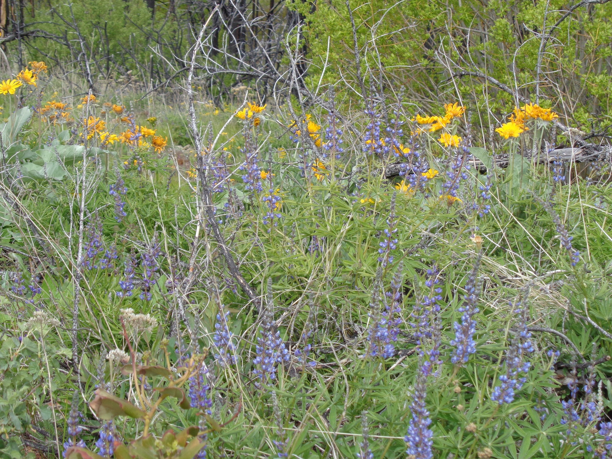 We traveled on into the old burn. The wildflowers were pretty good today. Whilst I took the picture, the demon dog "rested" by trying to flush some critters up. There were none, but it kept her busy. She is a busy dog.