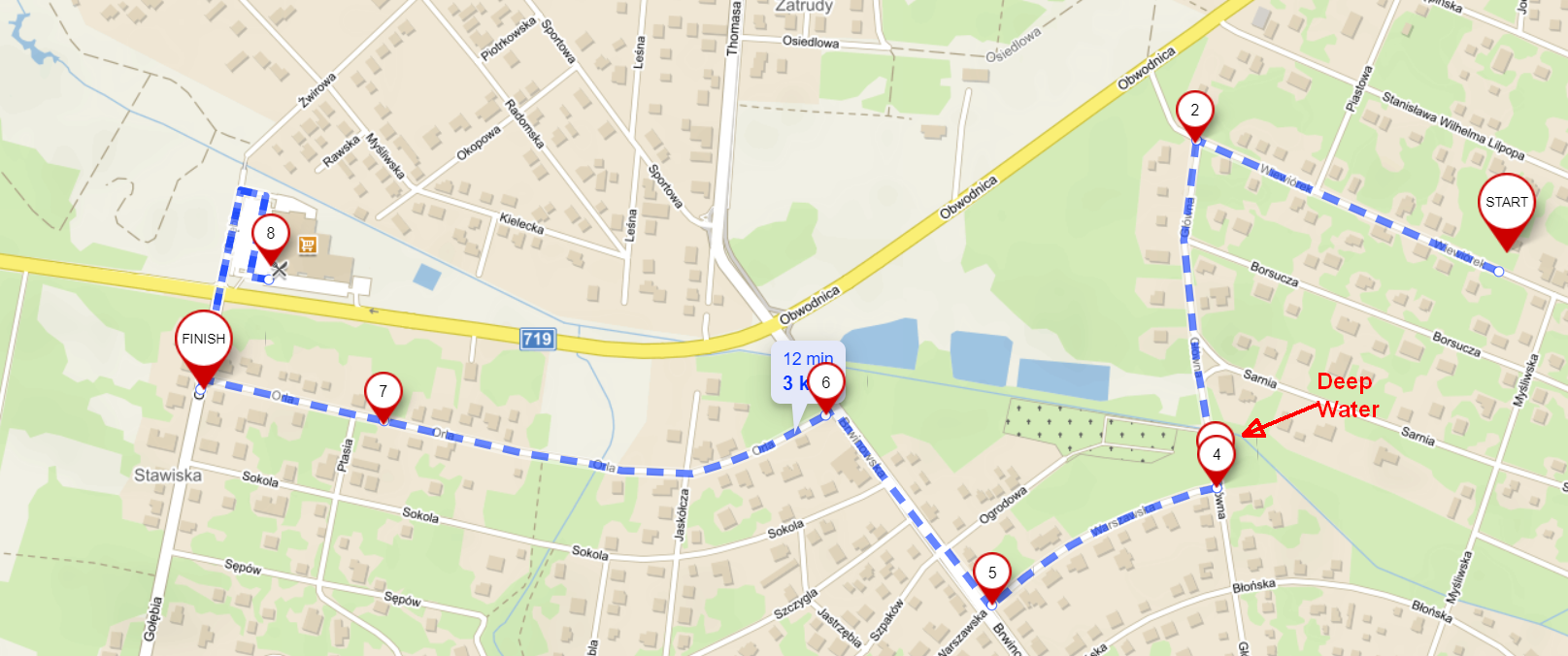 I could as well be riding naked... Oh no, the jacket-pocket had protected the smartphone at least! I predicted almost everything except of one thing. There is a street called Główna (Main St.) which is by no means the main one :D There also is the lowest point of the whole town there, by the cemetery. I rode into a puddle... and rainwater went above my ankles! While I was riding! :D