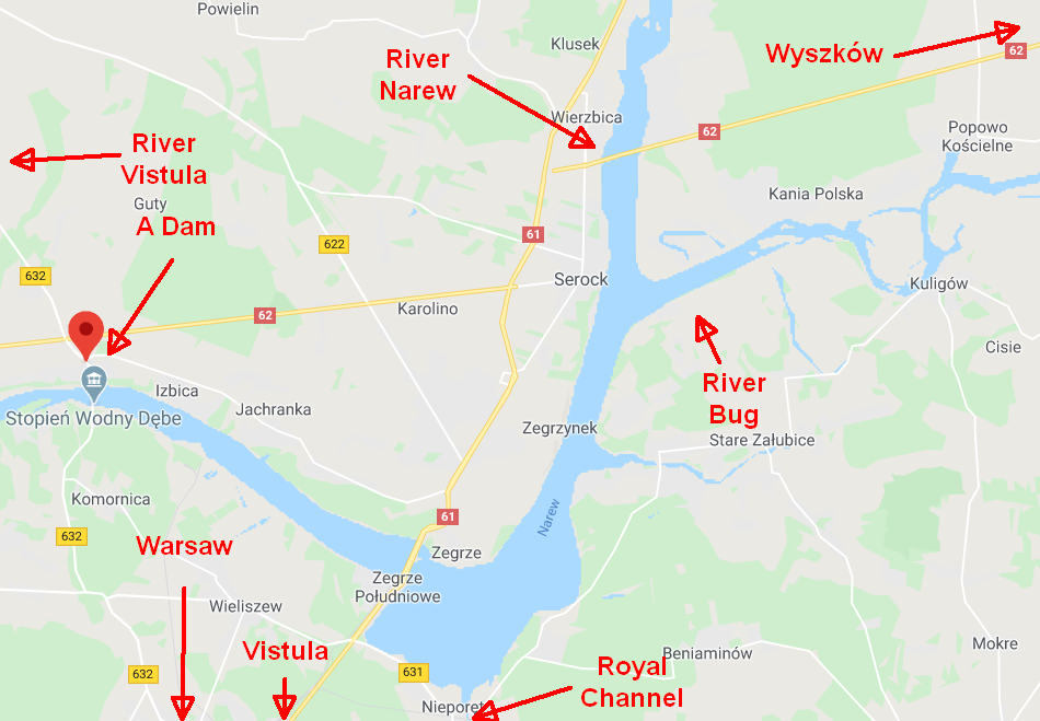 Then we saw that. Here, the River Narew before the River Bug joins it. I really regret I had no real camera with me; the smartphone was unable to take good pictures. Actually, the river is even wider north of Serock than shown.