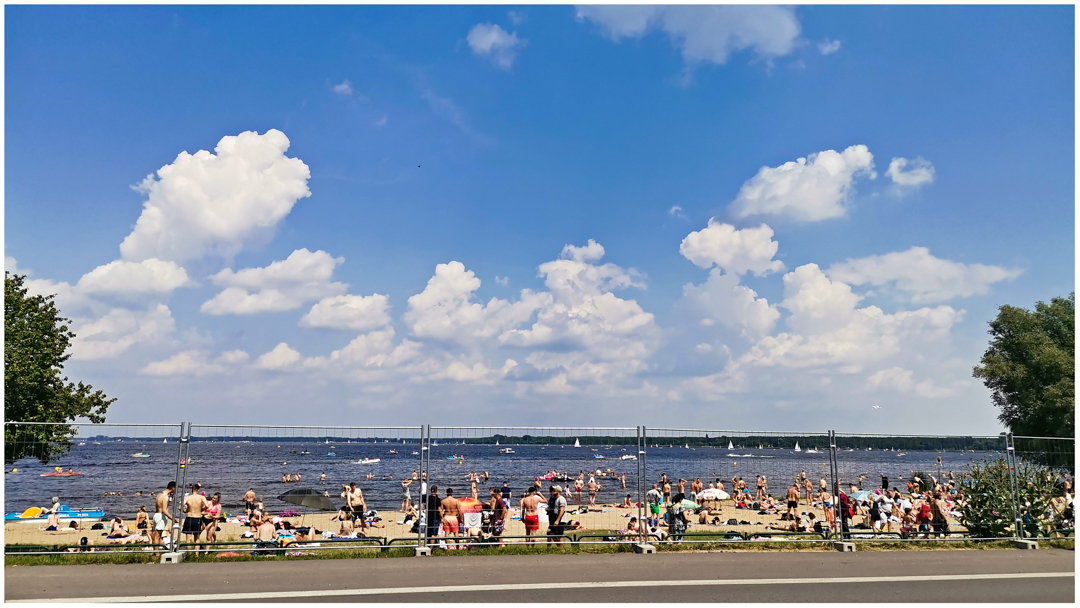 A public (and free) beach in Serock. Most of the area around the lake is occupied by recreational centres owned by large companies and sports clubs (also many marinas), with some space available to the general public.