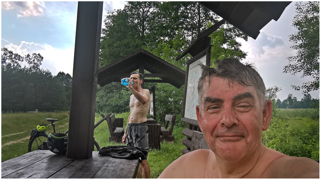 The Vado and the Lovelec are made for road. Although we both hated it, we had to take an off-road shortcut. I spotted nice tourist shelters and we took a long rest some 10 km to the destination. It was a fortunate decision. While we were enjoying the Nature, there was a rainfall in Wyszków. When we later reached Wyszków, the rain was already over