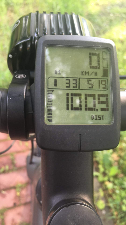 100.9 km in 4 hours and 1 minute. Our average speed was 25.12 km/h (around 15.6 mph). My first battery was good for 71 kilometres.