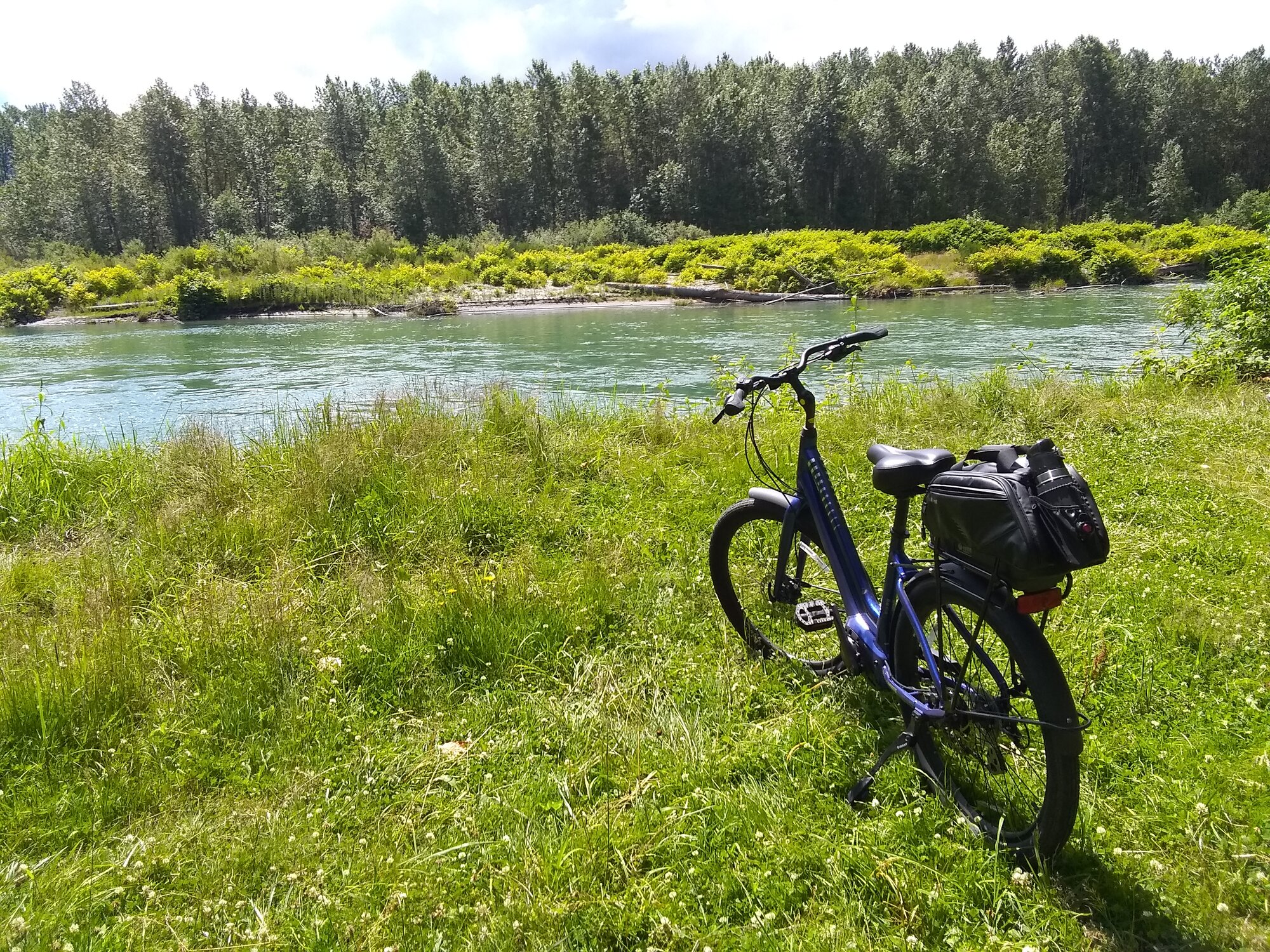 Nice day for ALmost 20 miles on the Cascade Trail in Skagit County, WA, heading towards the Cascade Mountains along the Skagit River. We drove the bikes over to the "Gateway to the North Cascades" logging town of Sedro Woolley, and parked at a trail head about 2 miles east of town to begin the ride.