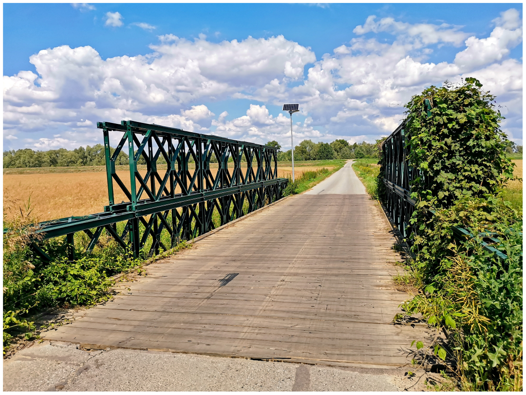 Eventually, I managed to reach the city of Płock! Here, the next adventure (good) happened. We had an audio chat with Agata, and she explained to me there existed "a stealth path down to the Vistula". It was a breath-taking riding a narrow path at the side of the railway bridge among the bushes! I was thrilled! See the railway tank-cars travelling to the largest oil refinery of Poland: ORLEN, Płock.