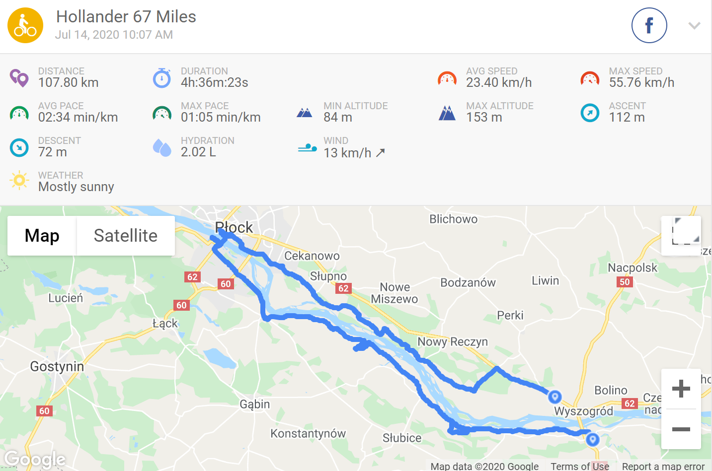 I was very tired at that point. Soon, I found proper tarmac, went Turbo and ran in the direction of Wyszogród, then Kamion. The smartphone battery died a couple of kilometres before the ride end.