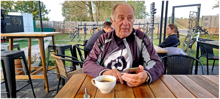 It is off-season now, and the only open cycling bar we met en route was the Full (like in the "full suspension MTB") in Gassy. Jerzy took a cup of coffee, and I was fighting to reorganise my pannier contents... to get access to my nutrients (more on that later). My pannier was now full of winter clothes!