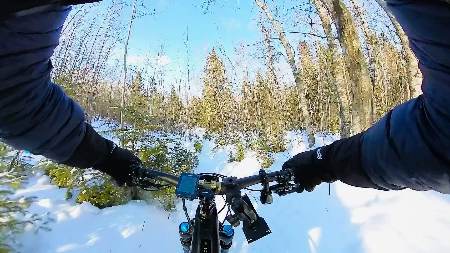 Yesterday it was a rather chilly -20C wind chill so I decided to bundle up and put on a down jacket along with my trusty ski helmet. Things warmed up a bit once inside the confines of the tree canopy but after a 30km outing the ride home was brutally cold and my toes were beginning to feel the effects.