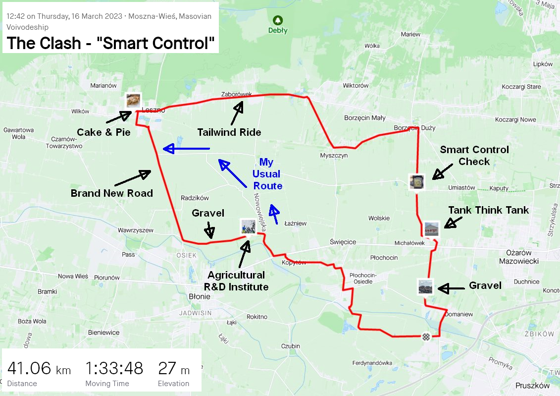 On Saturday, I set off for the ride to see Jacek, only it was Roadrunner and I chose the reverse ride direction (is reverse the correct word here?) It was up to +14 C but the SE wind was even stronger and it seemed very cold. I was as brave as to ride on a single 533 Wh battery and almost regretted that. As I was using Smart Control, the automatic assistance gave me plenty of oomph downwind but later I had to ride against the headwind on gradually decreasing assistance! :D The lesson: I should use manual assistance for the future rides.