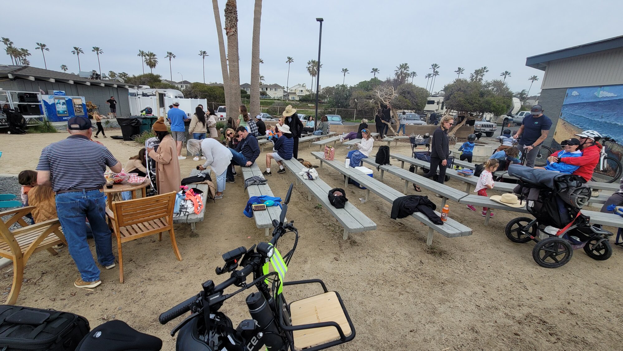 The Carlsbad State Beach Campground Camp Store down the hill from us was having free live music at 1700 on this hazy Saturday, so K and I rode down to join the party with some Camp Store pizza and BYO drinks.