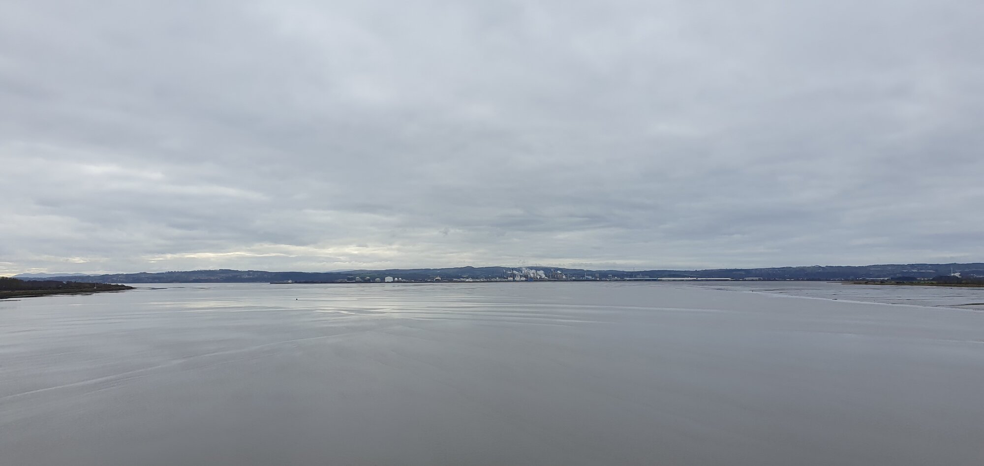 I passed through Falkirk which was fairly busy but didn't encounter any problems and I was now heading for the Kincardine Bridge, this is the view south of the Firth of Forth just before crossing the bridge with the oil refinery in the distance!