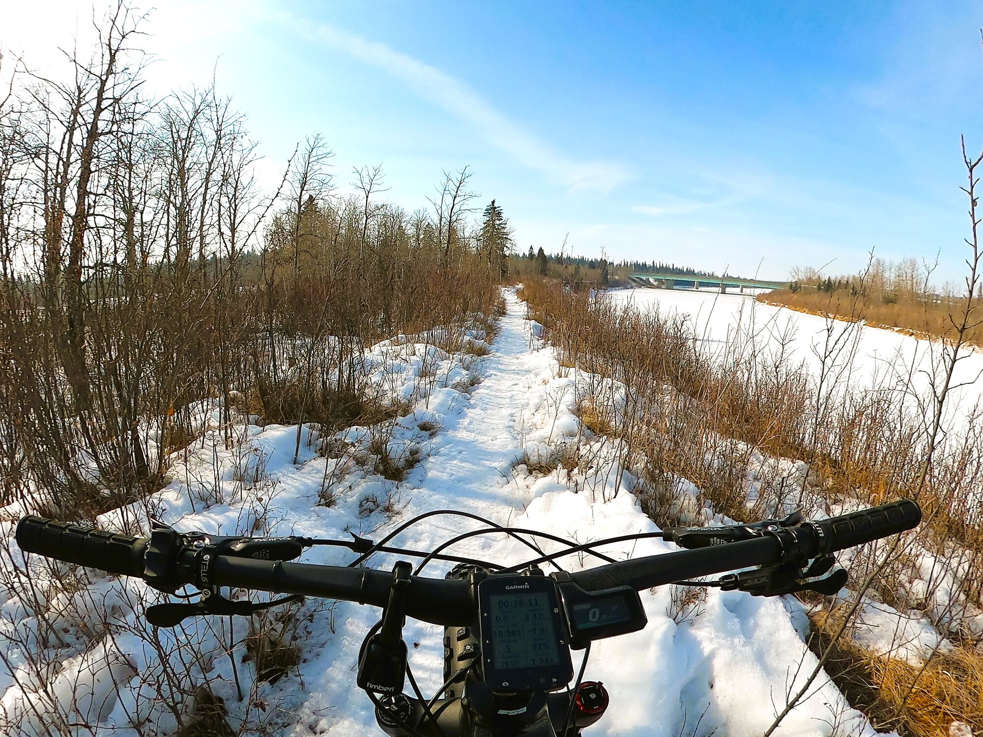 Today’s 33 + km ride covered three separate trails including a short run along the Garden Heights single track. Morning temperature at the outset was -14 windchill perfect for a two-hour morning spin as the ground conditions start to get a bit softer with the afternoon sun.