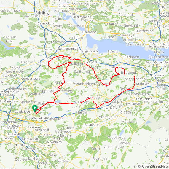 The wind was from the SW today and aound 15-20mph so I headed east to Broxburn using most of the new cycle paths when possible, with the intention of turning west to take on the big descent at Kingscavil! I have been waiting for the right day to take on this descent and today was that day, its a very narrow road so timing is of the essence and my luck was in as a car had just passed me so I knew there would be nothing coming in the opposite direction! The descent is in 2 parts as it drops down steeply and flattens before the steepest part which is hidden from view!