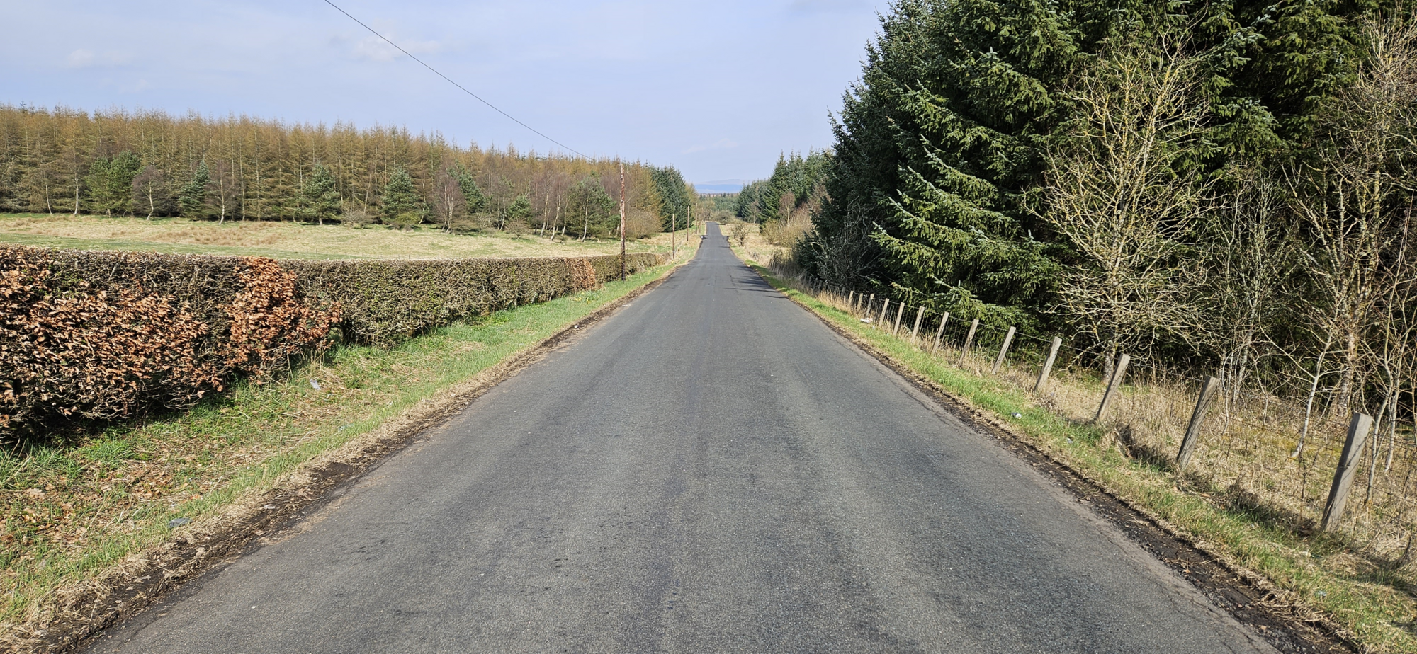 Just before Avonbridge I decided to turn north towards Shieldhill which meant I could enjoy the fast descent down into Falkirk, 41.8mph today and not a single car in sight!:D I then took the road through Lionthorn to head for the quiet back road to Bonnybridge, this is looking west from the top of the climb at Lionthorn! The frost can be seen in the shade of the trees, thankfully it got warmer as the morning progressed!