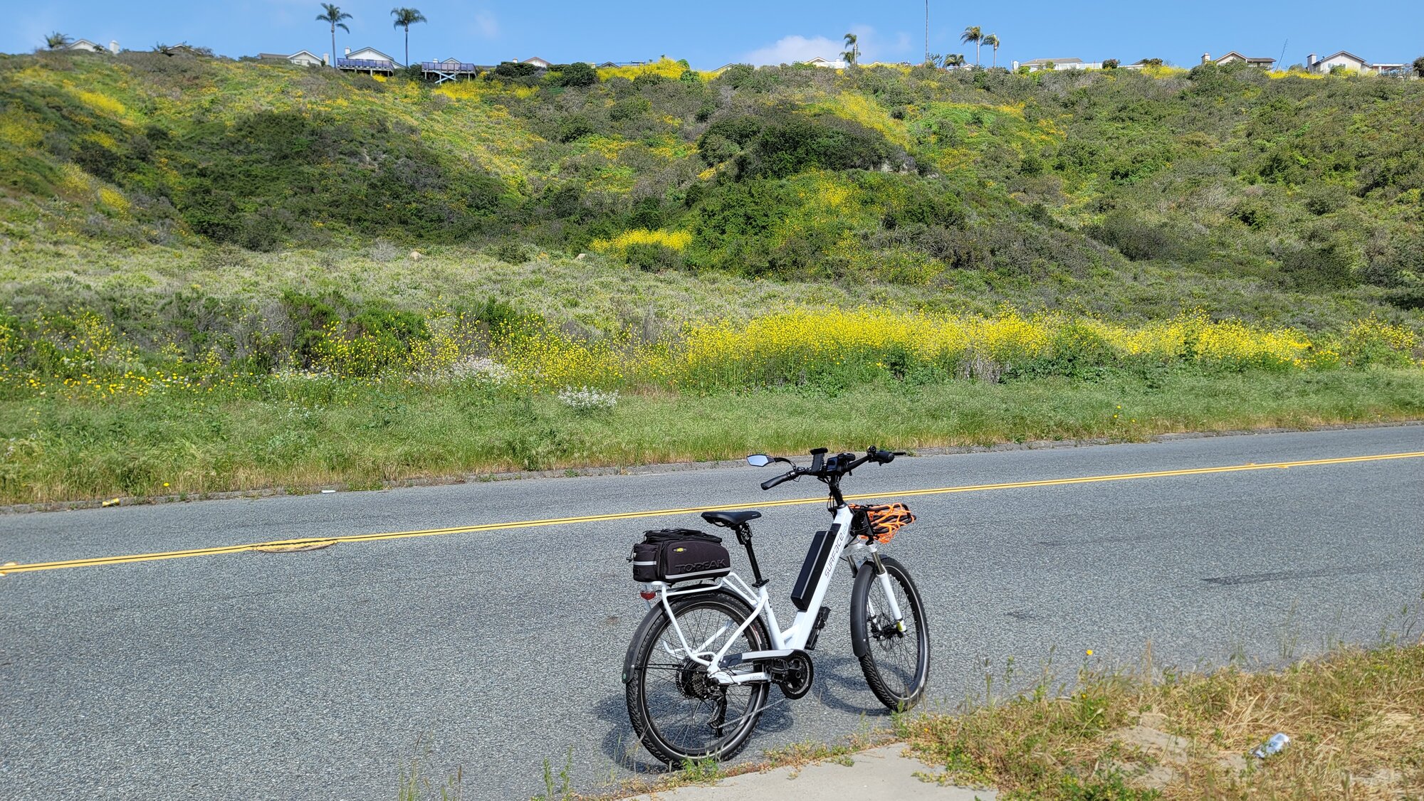 This afternoon, I rode 19 mi with over 1,000 ft of climbing just to immerse myself in the local color. Up first was an explosion of yellow in a public open space about 4 mi up the Coast Highway. I often pass it on coast rides to the north. The next 5 shots were from the single-track around this large field.