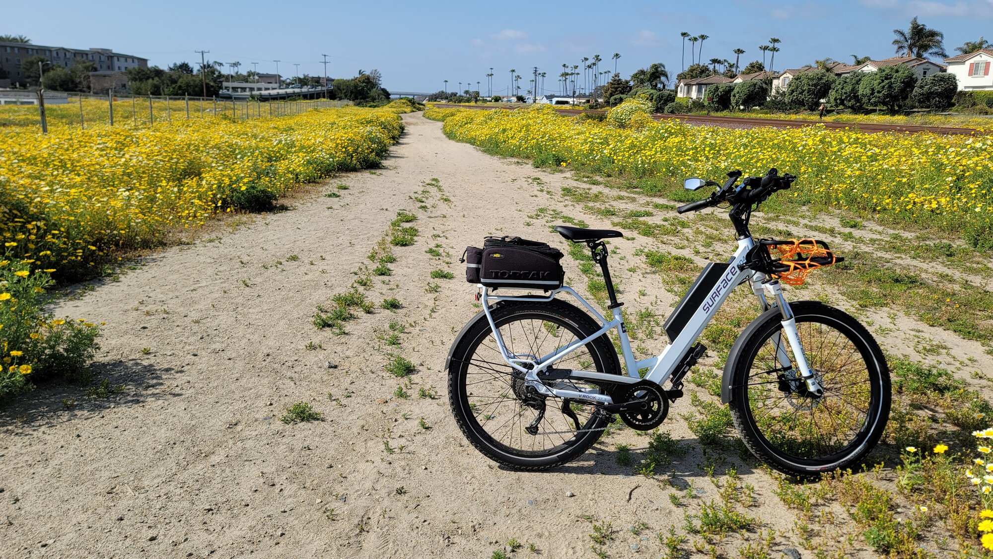 Another crown daisy takeover. The two-mile service road to Poinsettia Station could one day become part of the continuous "rail trail" planned for coastal San Diego County. For now, it's posted "NO TRESPASSING" — not that anyone pays any attention. From the station, it was another 3 miles home.