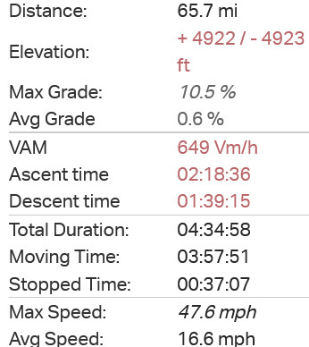 Only a few miles to home now and no problems encountered, it sure was a day of climbing with almost 5000ft of elevation gain...slightly more than 214m @Stefan Mikes
