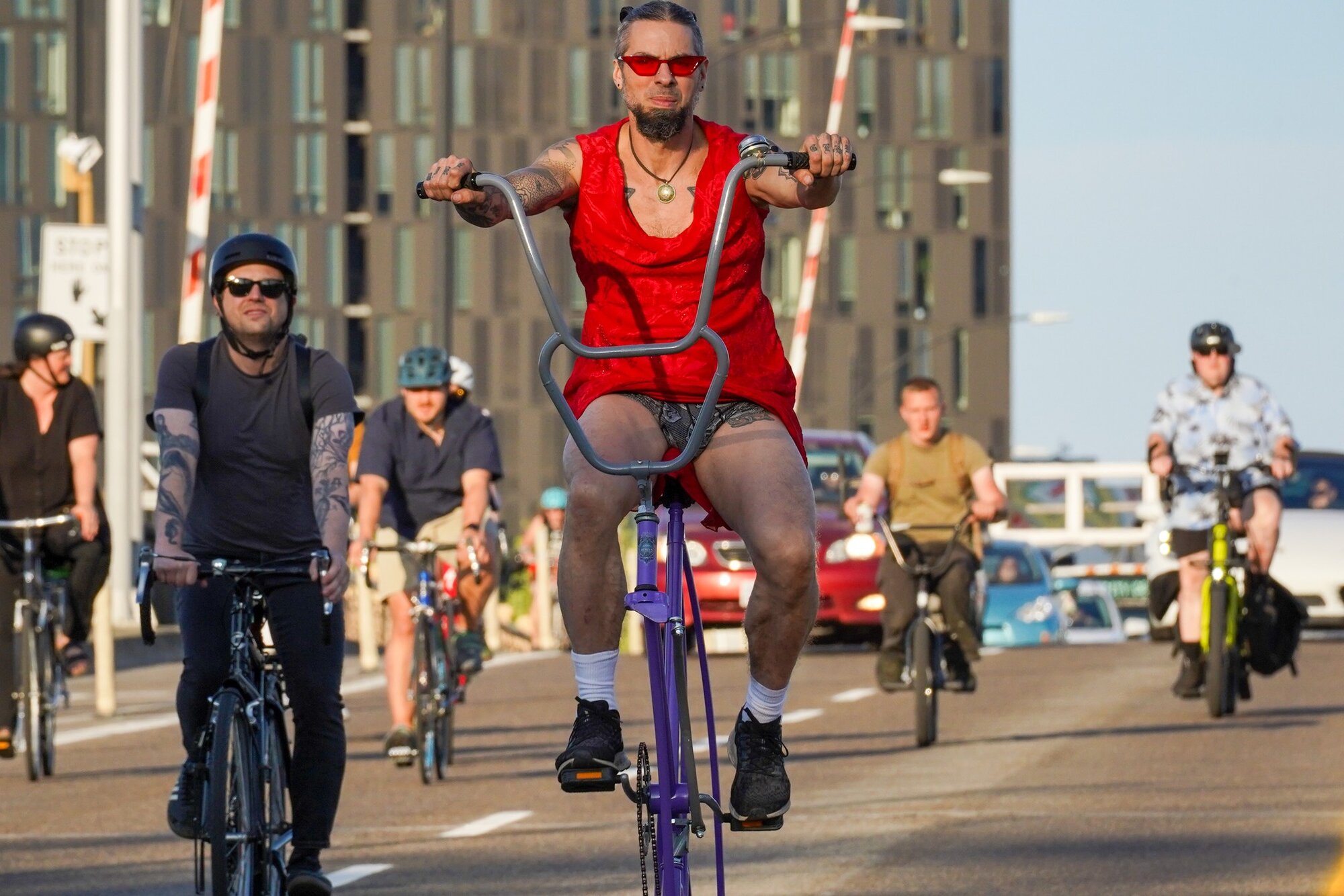 So to make everybody feel better about a future with swarms of bicycles everywhere, the'ye going to ditch the whacky clothes and ride nude?