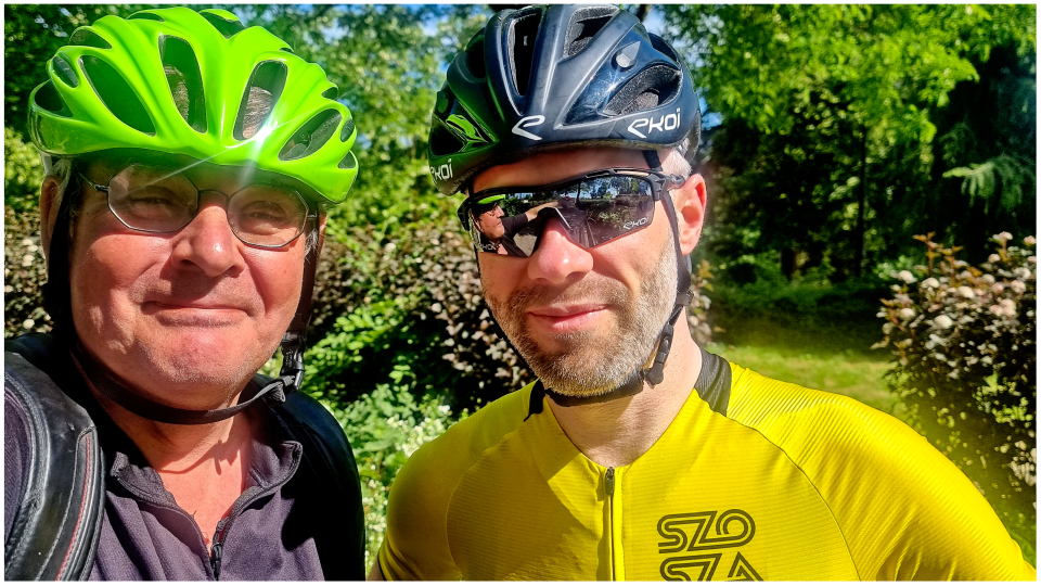 I was so glad to meet Staszek the Roadie in Zaborów! We've been friends since 2021 when he was one of people to induct me into group riding but we had not been riding together since. He has been, however, a great friend I could ask anything: how to prepare to an ultramarathon, how you ride in a peloton, what the intricacies of a bike geometry are, and like. He has been always offering advice regarding the route choice for my escapades in the unexplored area... A golden man! (He currently rides a Specialized Diverge bike with road and gravel wheelsets).