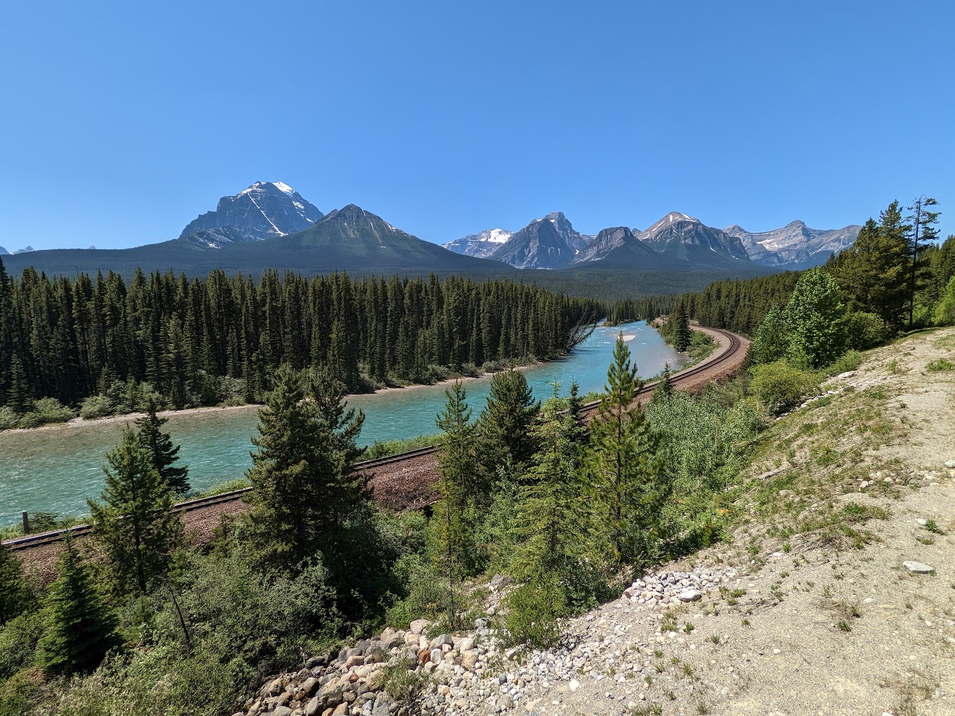 Along the shores of the Bow River at the junction turnoff with Castle Mountain providing an appropriate backdrop.