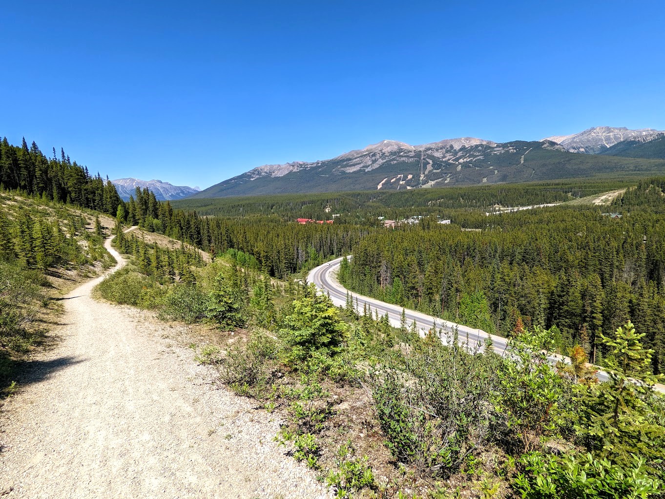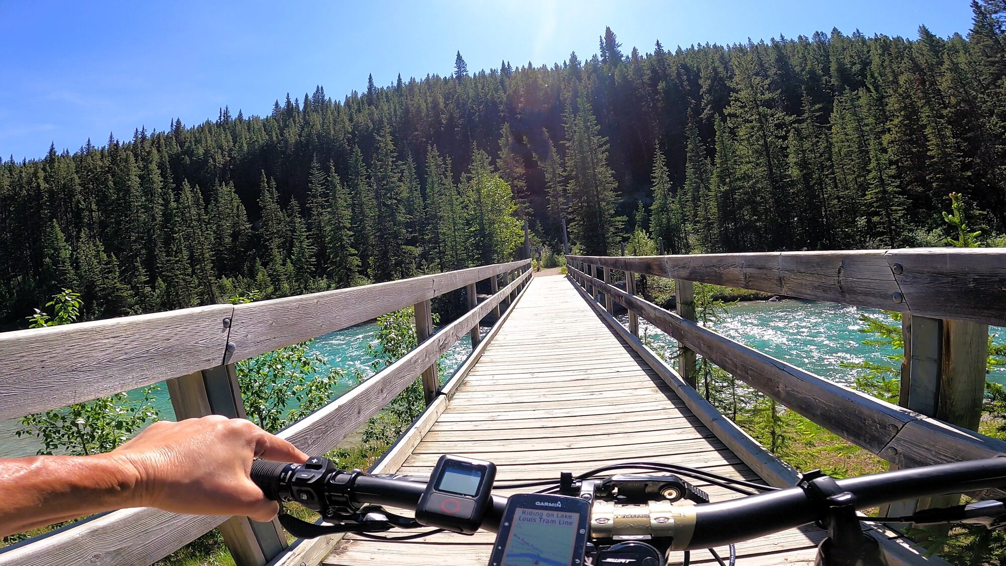 The Jewel of this area has to be Lake Louise famous for its vivid turquoise waters. It’s only midweek and the throngs of tourists flocking to the lake are already noticeable. The start of the double track Tramline Trail isn’t too far off at the end of the parking lot and is a much-preferred way to make your way down to Louise Village instead of the busy main Road which can be difficult for most cyclists as there is no shoulder to speak of. Just be sure to bring bear spray along with you as there are seasonal closures from time to time.