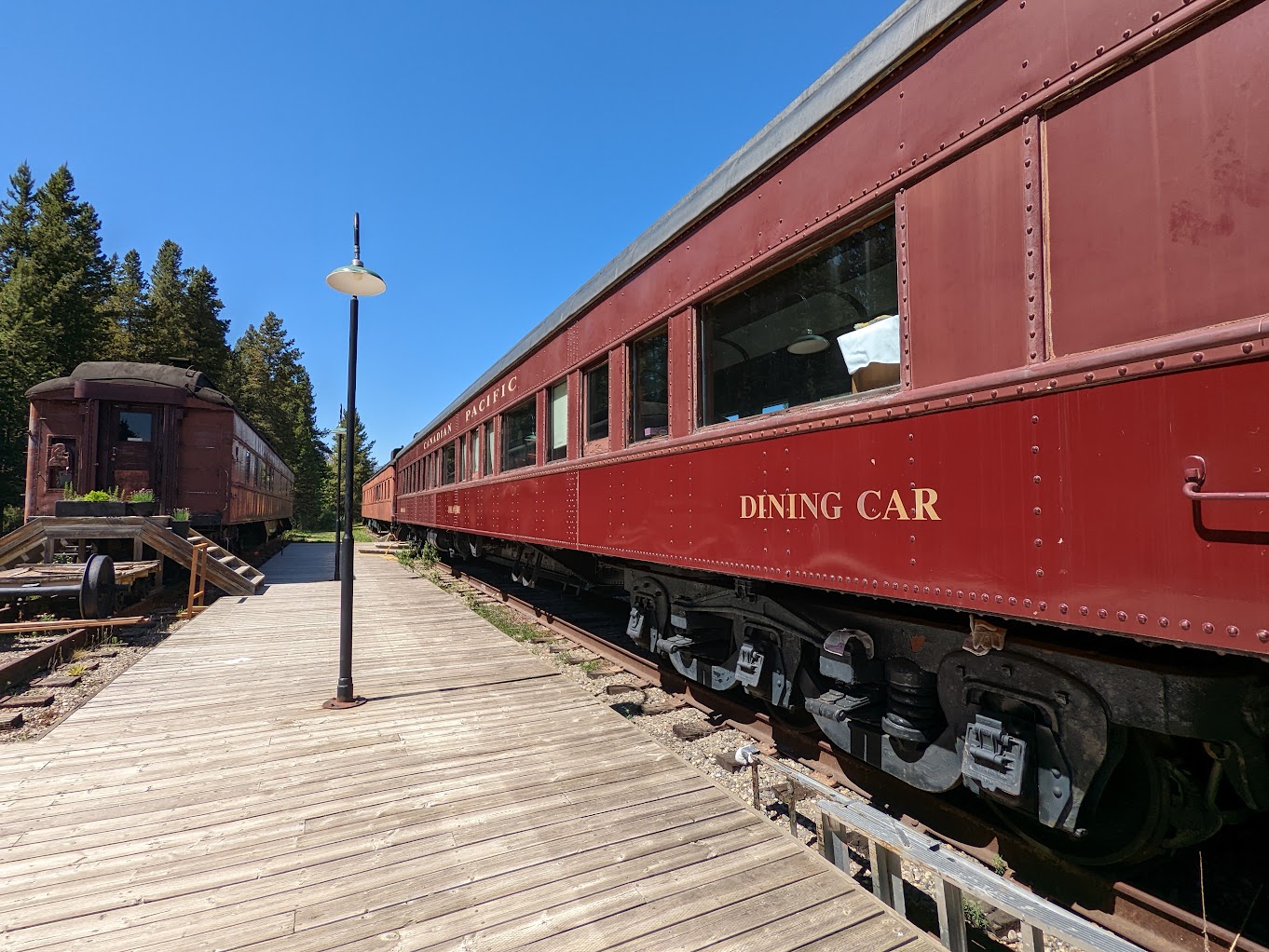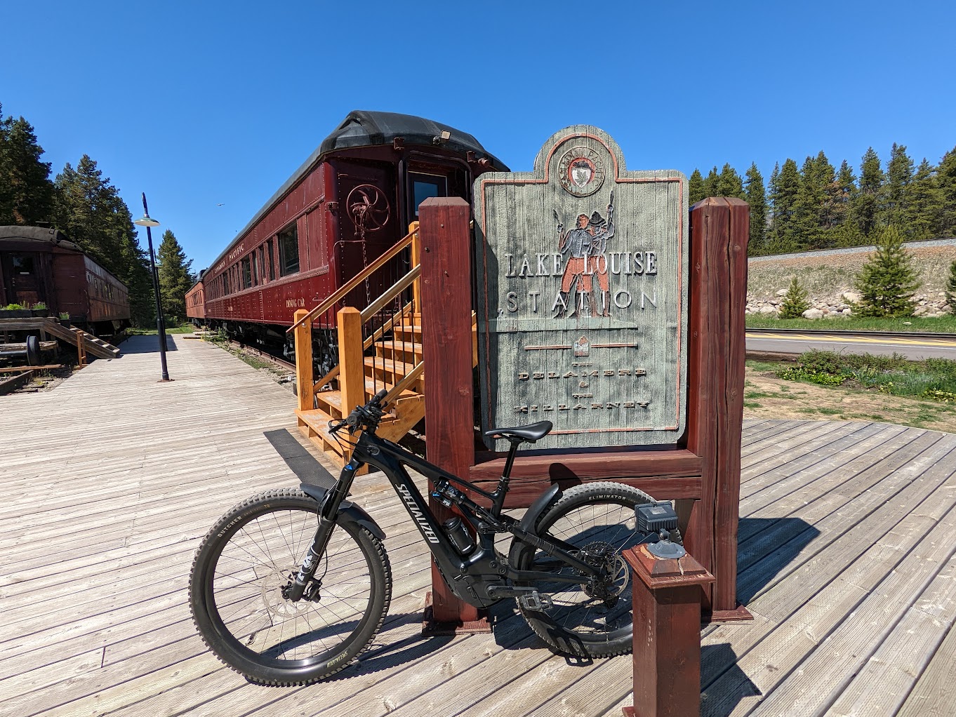 Exiting the Tramline Trailhead you'll come across the Lake Louise Heritage Railway Station and restaurant where you can dine in one of several authentic restored parlor cars (special events only).