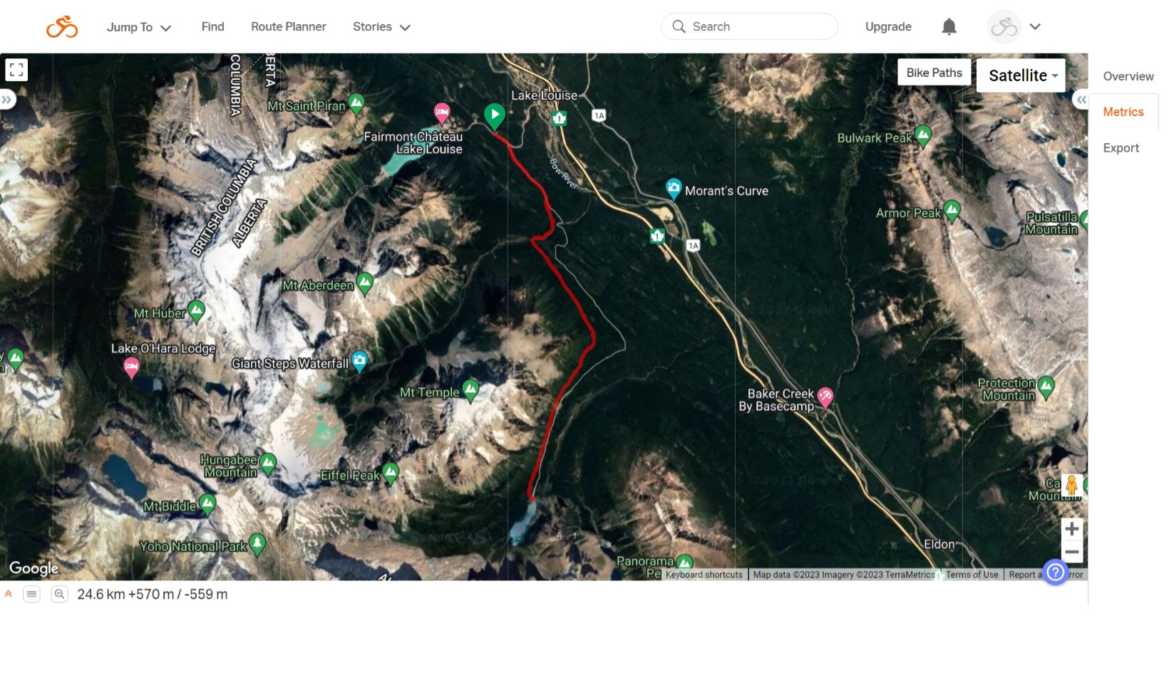 On Wednesday morning, I took to the road and drove the 3+ hrs to Banff NP before arriving at my destination the iconic Lake Louise. My aim was to ride the scenic Moraine Lake Highline Trail the following morning.