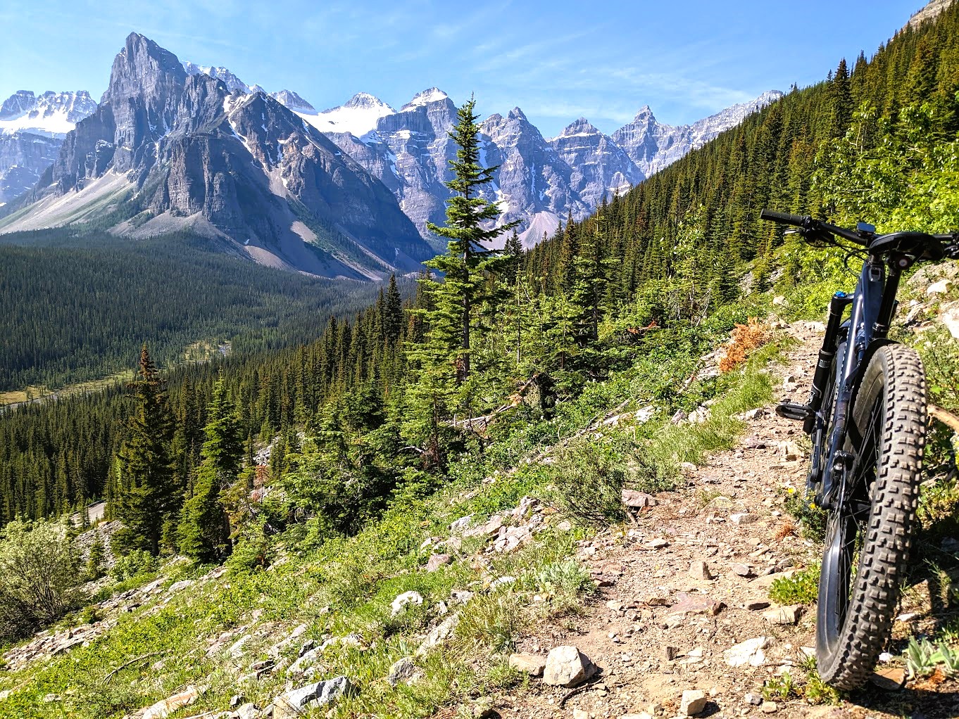 With that said, the rewards far outweighed the effort in reaching the top as the views of the peaks and its surroundings were positively sublime. It certainly couldn’t be considered the longest or steepest trail by any stretch but combined with the technical conditions, it would be an eye-opening experience for those who are looking for a flat easy trip to the top. It’s a black diamond rated single for this very reason and attaining those magnificent views does come with expected trade offs. Parks Canada does not allow e-bikes on backcountry trails but I was willing to bet money that there wouldn’t be many along the trail on this day to object. In fact, the last person to rate it on Trailforks just happened to do it on a powered ride.