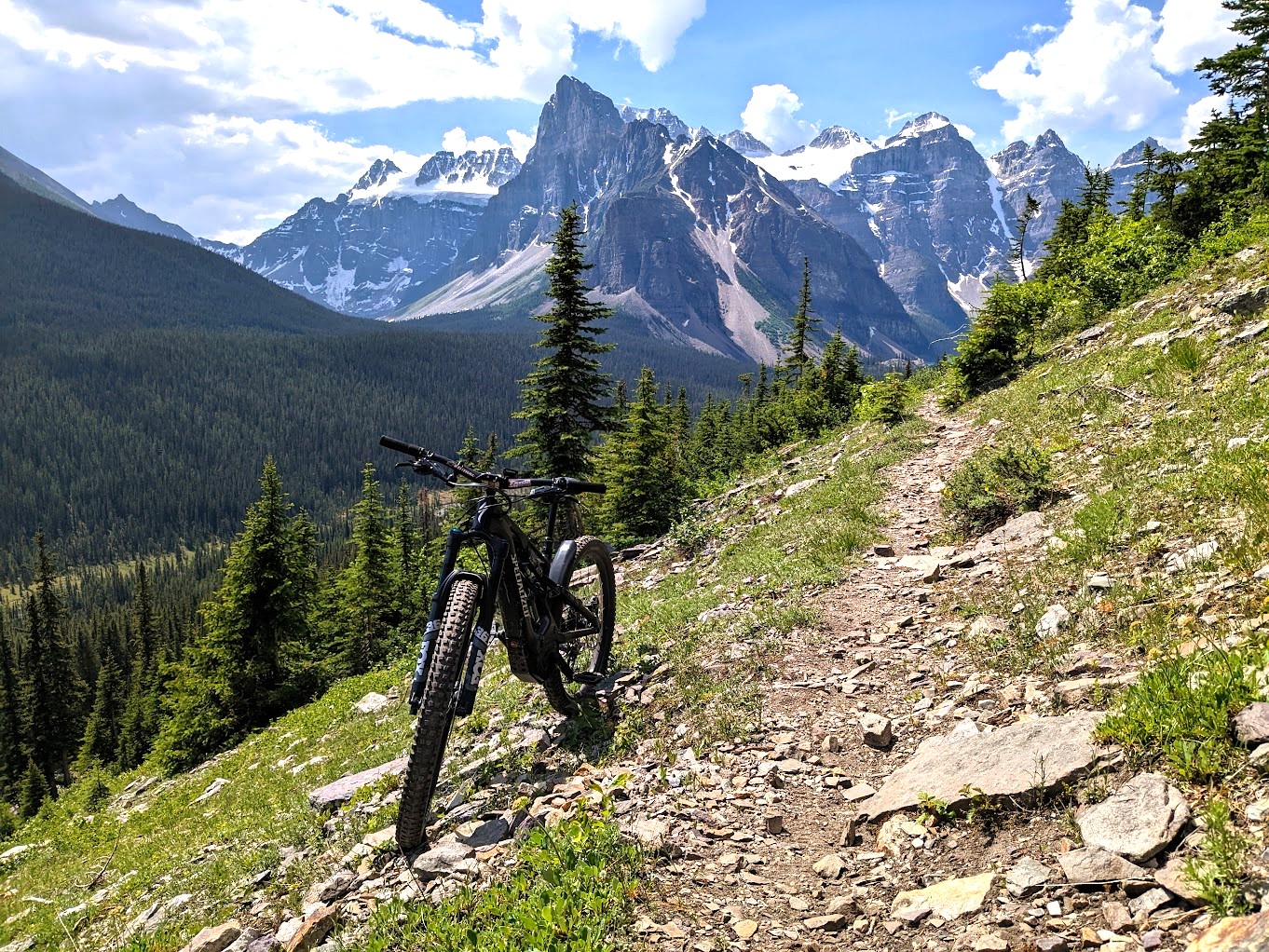 With that said, the rewards far outweighed the effort in reaching the top as the views of the peaks and its surroundings were positively sublime. It certainly couldn’t be considered the longest or steepest trail by any stretch but combined with the extreme technical conditions, it would be an eye-opening experience for those who are looking for a flat easy trip to the top. It’s a black diamond rated single for this very reason and attaining those magnificent views does come with expected trade offs. Parks Canada does not allow e-bikes on backcountry trails but I was willing to bet money that there wouldn’t be many along the trail on this day to object. In fact, the last person to rate it on Trailforks just happened to do it on a powered ride.